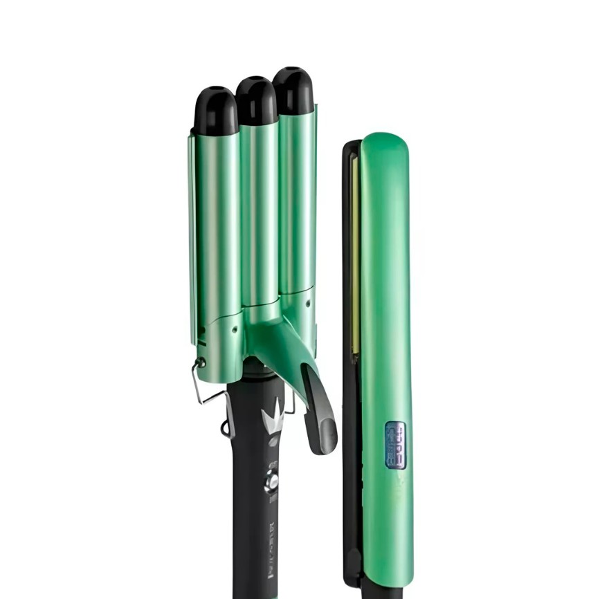 El combo incluye una plancha alisadora y una pinza triple que permite crear tanto ondas suaves como rizos definidos. Su estructura ligera y ergonómica facilita el manejo, ahorrando tiempo sin comprometer la calidad del resultado final.